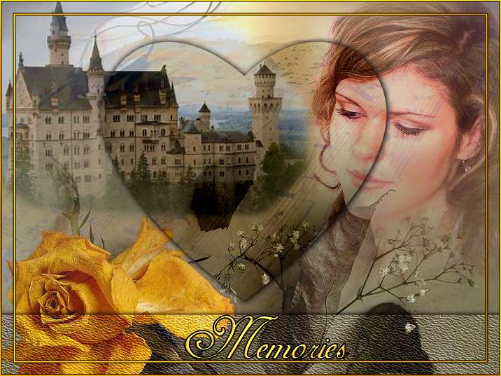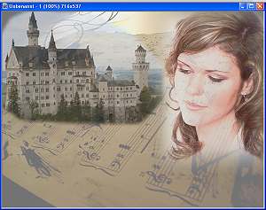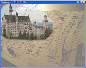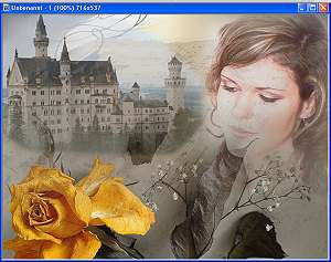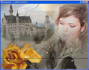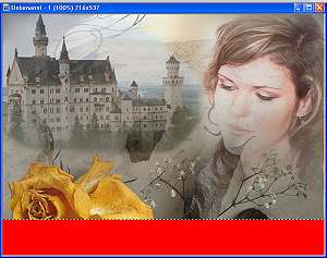 das Bild mit der Rose, kopieren, im unserem Bild als Objekt einfügen. Danach Menüpunkt: Die Blume nach unten schieben, so dass sowohl das Schloß wie auch die