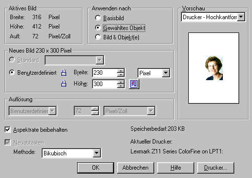 2. Bild 2 anwählen, Menüpunkt Format-Bildgröße wie links dargestellt einstellen. Höhe 300