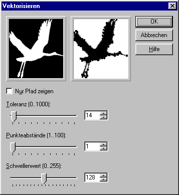 Storch markieren, Menüpunkt bearbeiten, Vektorisieren-Markierungsrahmen