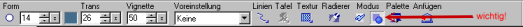 Ich wähle nun den Malen-Pinsel,und stelle die Attribute wie links gezeigt